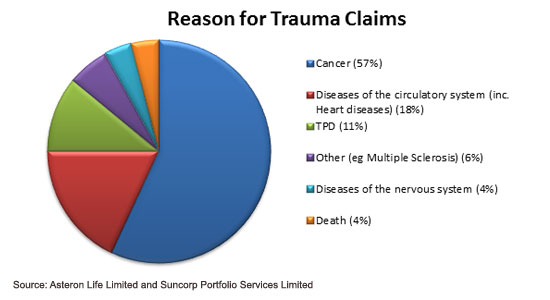 Trauma insurance, sometimes known as Recovery Insurance, provides back-up for your lifestyle, paying a one-off lump sum if you have a serious medical condition covered by the policy, for example cancer, heart attack, stroke or an accident, and over 30 other specified conditions. It will help to take the pressure off your recovery time by not having to worry about your finances.